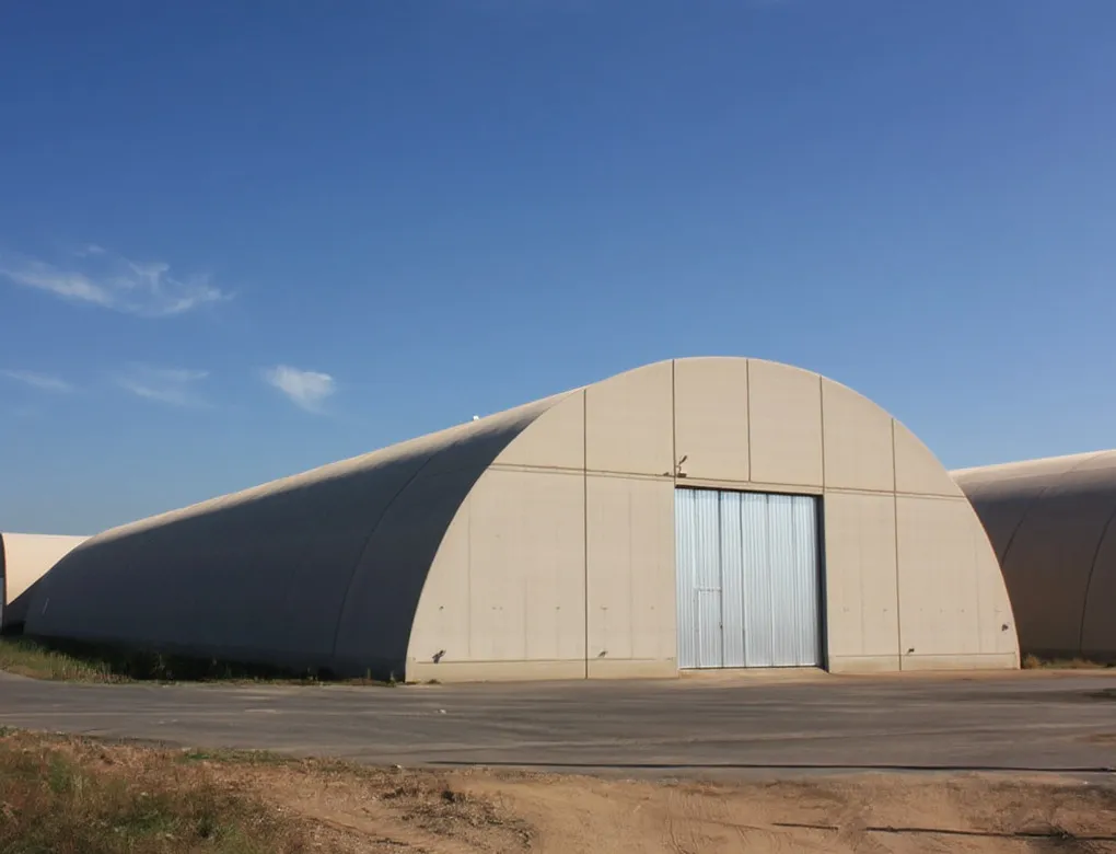 Ключевыми преимуществами являются: высокая прочность конструкции, устойчивость к экстремальным нагрузкам, минимальное количество внутренних опор, что позволяет эффективно использовать внутреннее пространство, долговечность (до 100 лет), низкая теплопроводность оболочки, что важно для хранения сельхозпродукции.