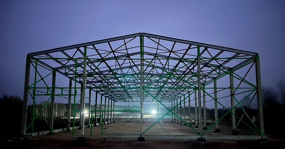 - Монтаж: сборка каркаса, установка ограждающих конструкций, монтаж ворот и инженерных систем.
